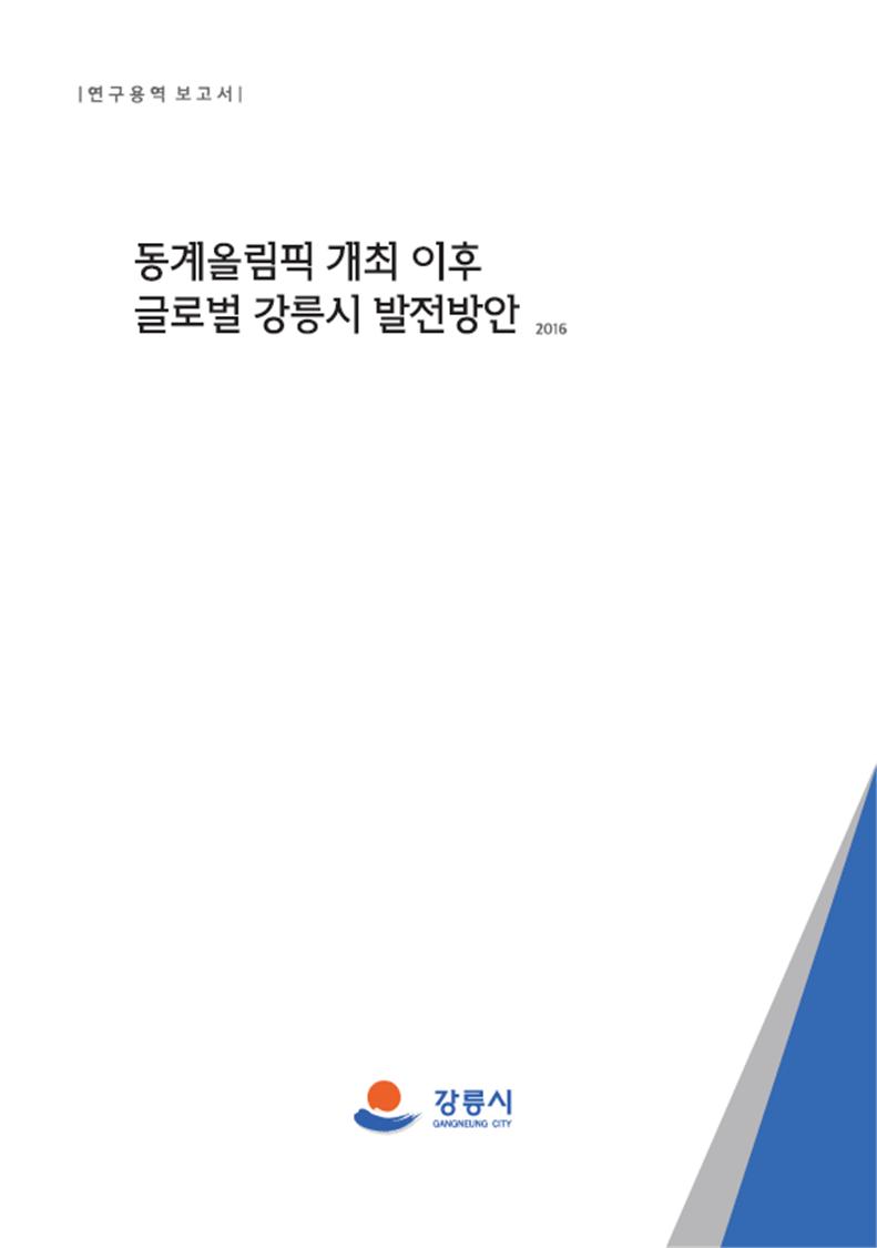 ·제목: 동계올림픽 개최이후 글로벌 강릉 발전방안 연구용역 - 유망산업을 중심으로 ·지원: 강릉시청 올림픽운영과 ·연구기관: 성공경제연구소 [ 보고서 발췌(1부 중) ] ○ 본 연구는 동계올림픽 개최 이후 올림픽관련 시설의 향후 활용방안을 마련하고 강릉시의 유망산업을 발굴하는 것임 - 동계올림픽이라는 메가스포츠...